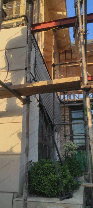 اجرای نمای روی سازه چوبی با نمای پیش ساخته در سیاهکل با استفاده از ابزارهای بهینا نما انجام گردیده است .در این پروژه نمای ویلای دو طبقه درسیاهکل با سازه چوبی پیش ساخته بوده و با ابزارهای ما پوشش داده شد. در این نما به دلیل نبود زیر کار ابتدا دیوارها با فوم و سیمان پر شده و زیر سازی انجام گردید و از ابزار پنل برای سطح صاف، تاج, قاب پنجره استفاده شد .